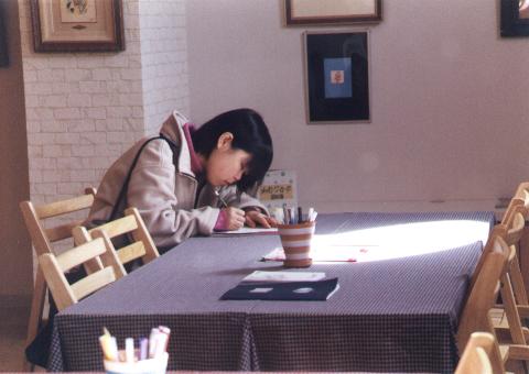とある館内で記帳している女性が1人。