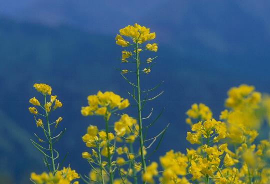 山の青さに菜の花の黄色がまぶしい。