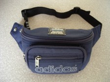 2006年1月から、ウエストバッグを、以前、 大会で使用していたバッグに戻しました。 バックルが紐の中央ではなくバッグのすぐ右横に 付いてるので、トイレ時等の取り外しがやりやすい。 (紐にカメを通してるので外すのが一作業なのです) 又、大会でも携帯電話を入れて走るようになり、 入れだしが安易なのも理由の1つです。 走りの為の機能性を考慮しますと、 退行する行為なのですが腹持ちが良いので。 でん部の亀のもっこりと、腹部のバッグのでっぱりの バランスが自分的に良くなりました。 アディダス製、1995年購入 |