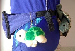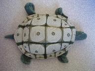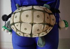 元々はパペット人形です。 お尻から手を入れて頭、前足に指を入れて動かします。 甲羅と胴体部に隙間があります。 その隙間にウエストバッグの紐を通し背中側(尻) に位置するようにしてます。 このリアル陸亀くんが亀部隊のメインです。 別名、腰の「守り亀」です。 皆さんの??な反応が気持ちいいな。 THE STUDY ROOM上野駅店にて2005年に購入