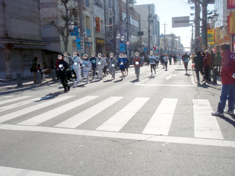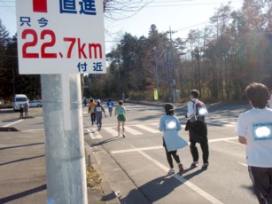 1〜5kmまでが1キロ毎で、以降5キロ毎、残り5キロから再び1キロ毎。