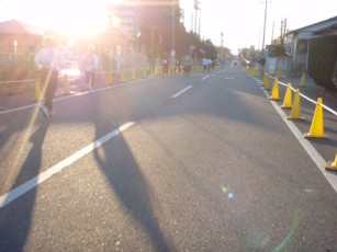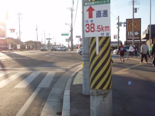 それ以外に中間点、交差点や曲がり角等にも距離表示があります。