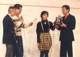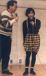 前夜祭が2/27に行われました。 以下はその時に撮ったものです。 ゲストは「タッチ」の浅倉南の声で有名な日高のり子さんでした。メインは歌謡ショー(!)。 彼女は、この時すでにマラソンを走った事があったそうです。ガッツありそうですもんね。 ・・・ちなみに彼女とは同い年です。同学年アイドル、無条件あげ!! | |