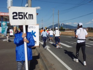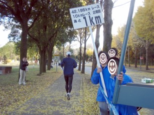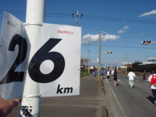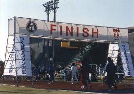 11月最終日曜日に開催(が多い)。 その為、シーズン最初のフルマラソンとして調整される方が多し。 思い出深い大会なのですが、好きなコースではありません。 記録狙いの方にはフラットで良いのでしょうが、 私にはひたすらまっすぐで滅入ります。 また2車線のうち、左車線しか解放してないので窮屈な印象はぬぐえない。 無理な追い越しはあきらめましょう。 それと何度か信号で止められるのは覚悟しましょう。 私にとっては休めるんでいいですが・・・。 スポンジテーブルがいつからなのか姿を消しました。 私にはこれは非常に痛い。他の人は何ともないのかなぁ。 (今はスポンジなしでもいけるようになりました。慣れってこわいね。) マイナス面ばかり綴ってしまいましたが、ゴールはいいですよ。 競技場に帰ってきてのFINISHは達成感を煽りますね。 ※上記は、1999年UP時の文章です | |