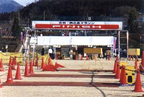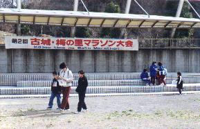 1999年から開催されて、第2回の2000年に参加しました。 3月下旬開催。 会場内に駐車場有りますが、早くいかないとちょいと遠くに停めさせられます。 プールのコインロッカー(100円必要で無料)が使用出来る。シャワーも使えたか? 会場は広々していて、せせこましくなくていいです。スタート地点は各種目共通。 コースは坂・さか・サカです! ハーフは5.5kぐらいまで上り坂。次は7kぐらいまで下り。んで左折してまた上り。さらに今度は急な下り。 というように上り下りと坂道が多数あり走りこんでないときつい事まちがいなし。・・・当然、私はきました。 コース最後は河川敷で平坦になりますが、風が吹くと正面気味からとなり、またまたきついです。 練習するにはいいコースだという意見が多かったですね。。。 梅林の中も多々走り、梅の香りが感じられるはずです。がっ、私は鼻が悪いんでほとんどわからなかった。 応援は梅の香りのようにほのかで私的によかったです。 | |