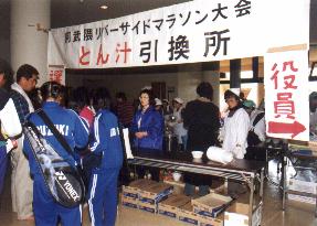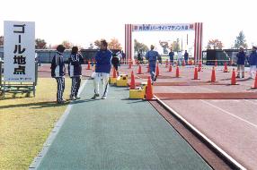 スタート時、競技場を2周有り。 リバーサイドマラソンとありますが、 少し遠目に阿武隈川は見えます。 前半の河川沿いコースは狭くやや走りにくいかも。 中盤の街中では応援が多くなります。 街中の方が広々していて気持ちいいかな。 河川沿い土手の上がり下り程度の アップダウンは数ヶ所有ります。 |