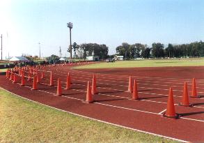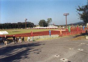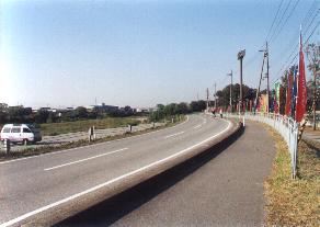 ![]() この道路を右手に折れると競技場 |