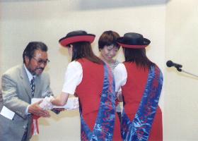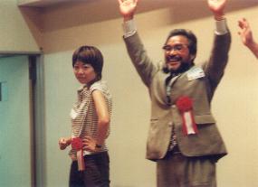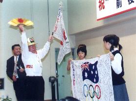 ![]() オリンピックの日本応援団長で有名な山田さんが シドニーオリンピックの旗を持ち出して音頭 |
