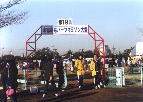 12月の第1日曜日に開催。 2003年の第19回大会に参加。 コースは潮来市の街中近辺で、ハーフは同じコースを2周する。 アップダウンはなくほぼフラットで走りやすい。 景観も飽きは来ないんじゃないでしょうか。 ただ1周目途中で、先行スタートの車イスハーフの2周目に抜かれます。 左車線のみ走行なので左端に追いやられます。 その部分はランナーにとっても車イスランナーにとっても走り心地よくないですね。 給水所は5km,10km,15km,20km の4ヶ所。 沿道の応援は幾つか点在して私好みの多さです。 無料の「しじみ汁」がおいしいです。 2004年の20回大会は強風で中止。 2005年から大会休止になりました。 私が参加した2003年が実質最後の大会になってしまいました。復活はあるんでしょうか。 | |