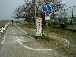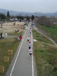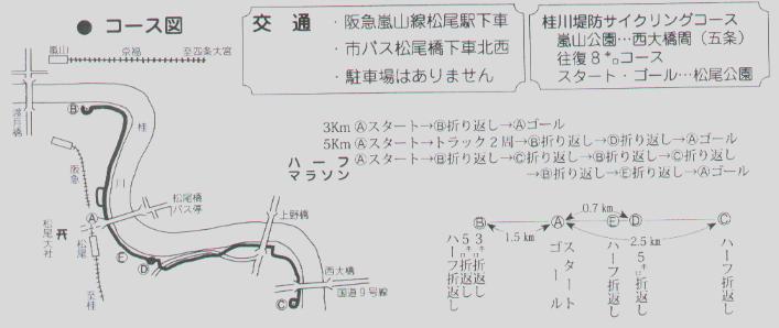 ![]() 桂川堤防自転車道がコースです (レース中の画像でA−E間です) |