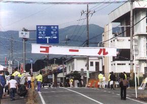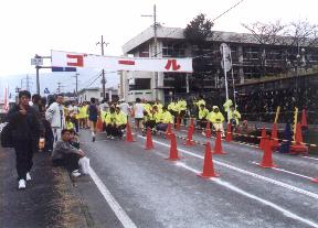 ![]() スタート地点の沿道の横断幕 |