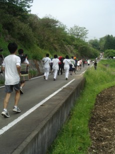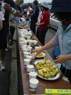 どちらにしてもマラソン大会には見えません↑↓ 給水所での風景 序盤から歩いてる方多数です ↑↓