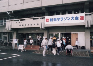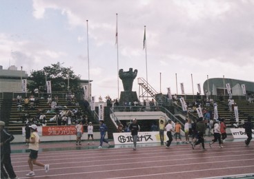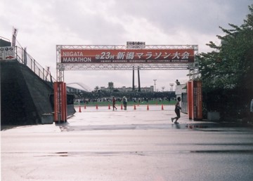このゲートから競技場に入り3/4周してゴールです 2005年の第23回大会のハーフの部に参加。