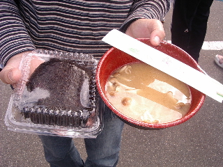 参加者サービスの「新米ジャンボおにぎり」がうれしい。