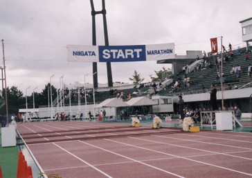 ↑↓ 会場の新潟陸上競技場 ↑↓