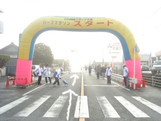 ハーフだけスタート地点が若干遠いです。2千人もいるので私のような最後尾出発組は問題なしです。