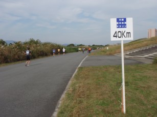 キロ表示は5キロ毎。残り10kmからは1キロ毎にあります。