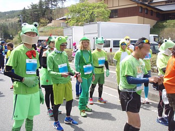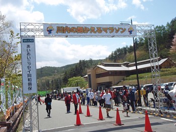 第1回大会完走タオル、完走メダル、参加賞シューズバッグ川内の郷かえるマラソン・トップページ